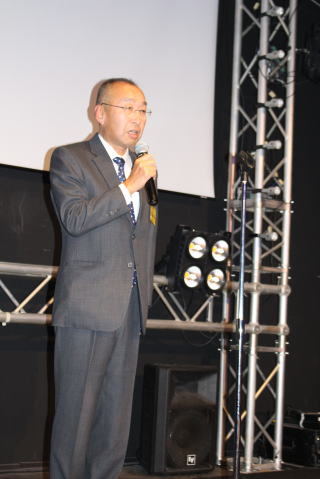 永山 林氏・那須塩原市 福田真二秘書係長の市の発展する現状のお話とともに「元気なふるさと作りに皆様の支援協力が欠かせない」のご挨拶を戴いた。(写真は総合司会春原氏・講演関谷文隆氏)