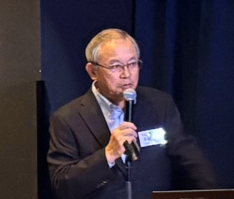 午後5時、東京総会イベントの一つ、同窓先輩による特別講演が行なわれた。今回の講演は、桑原 裕氏(高10回卒・大田原中学出身) 学術博士(東京大学大学院卒・日立製作所中央研究所・米国英国日立代表等歴任)