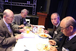 同窓生シニア代表とヤングアダルト代表による「カンパ~イ」のご発声で、懇親会がスタートした。各テーブルは出身地別にセットされ、高校入学前、出身中学校時代の先輩や同輩・後輩と、懐かしさも相まって美味しそうにグラスを傾けあっていた。自然と出てくる田舎なまりが微笑ましかった。